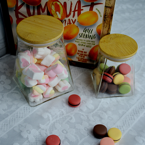 الطعام محكم الغلق مع أسطح الخيزران للمطبخ المنزلي ، حوامل مزخرفة لأعشاب المارشميلو وماكارون