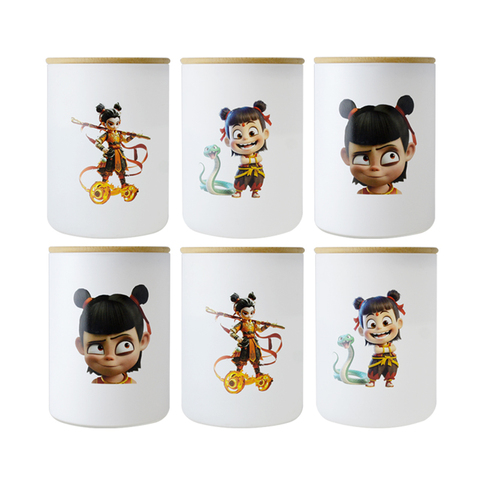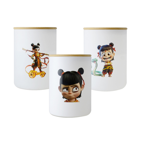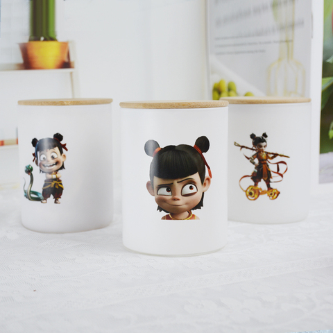 حاوية تخزين الطعام الزجاجية مع غطاء الخيزران ، تصميم نيزا الكرتون ، مثالية للشاي