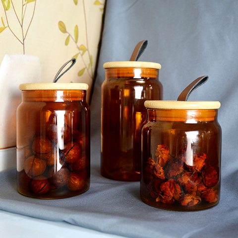 برطمانات زجاجية عتيقة مستوحاة من العنبر مع أغطية من الخيزران حاويات تخزين طعام مضادة للتسرب للمنزل والمطبخ