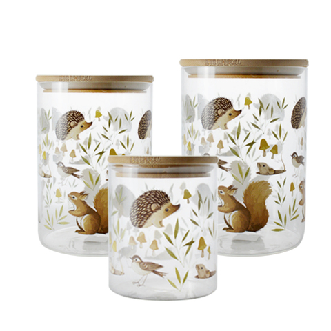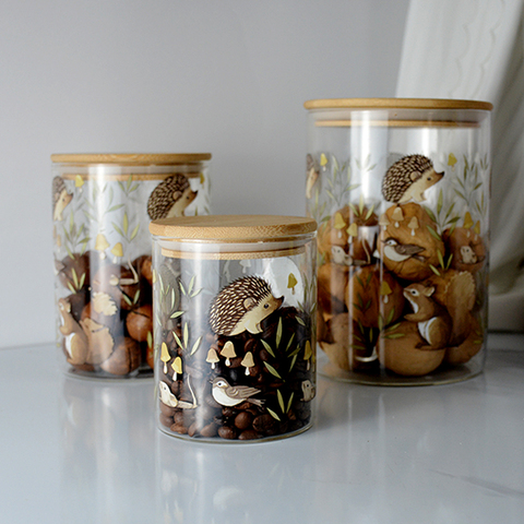 برطمانات زجاجية صديقة للبيئة من مخلوقات الغابة من البورسليكات مع أغطية من الخيزران ، ختم محكم مثالي لتخزين الوجبات الخفيفة والتوابل