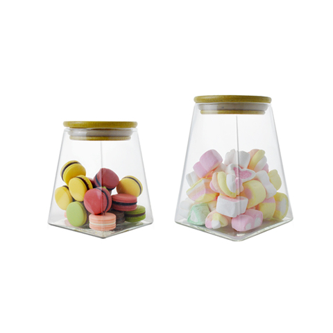 شفاف مع غطاء من الخيزران ، حاويات طعام محكمة الغلق للحلوى والوجبات الخفيفة والبسكويت ، علب تنظيم المطبخ