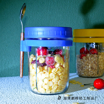 Barattolo in Vetro Rotondo da 380ML per Avena, Design Moderno, Contenitore per Yogurt da Notte, per Cucina e Feste, Vendita all'Ingrosso OEM